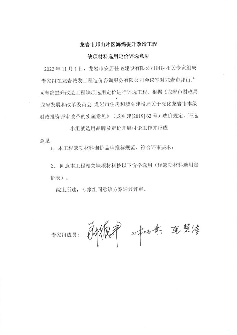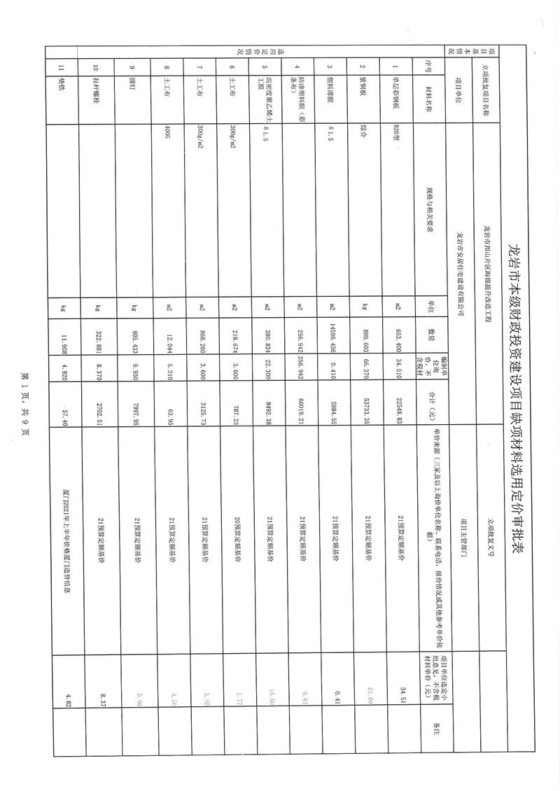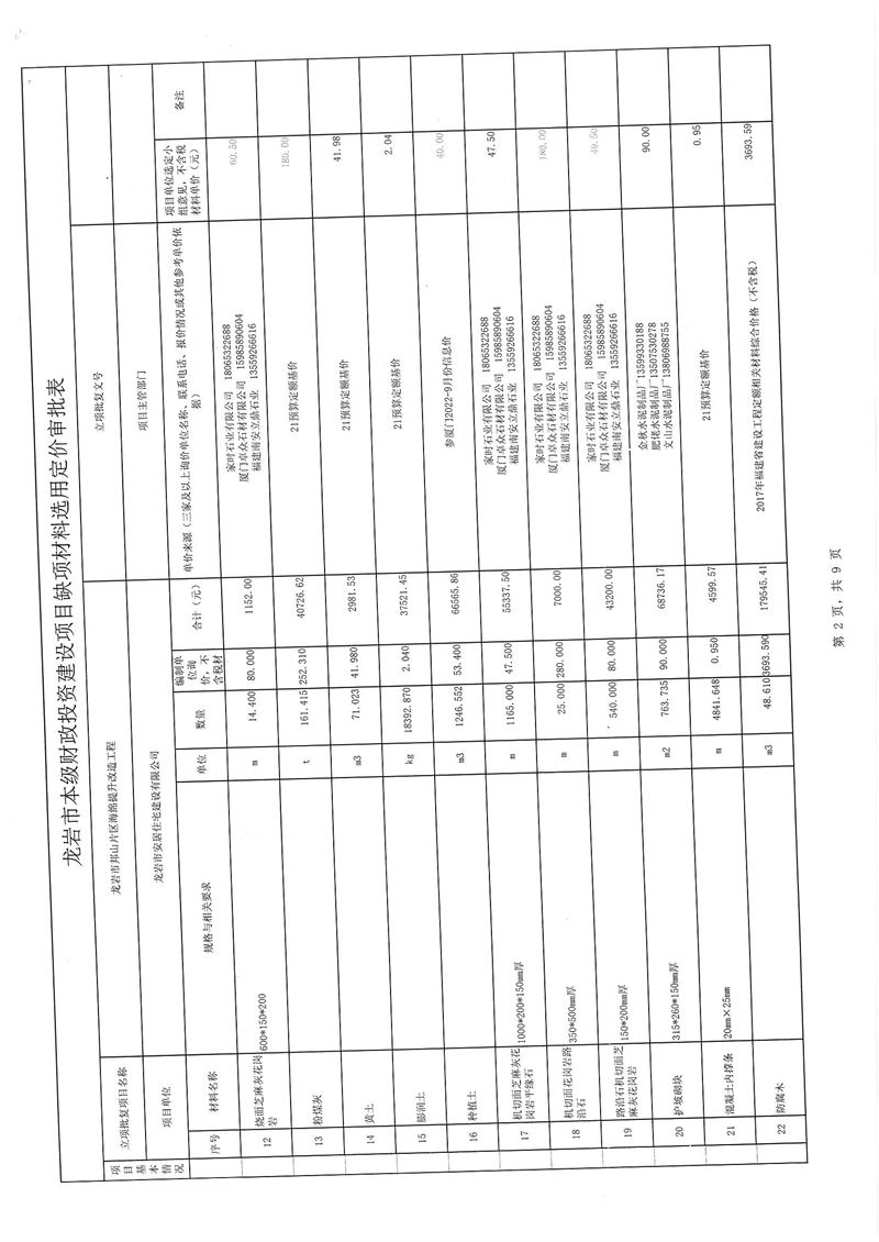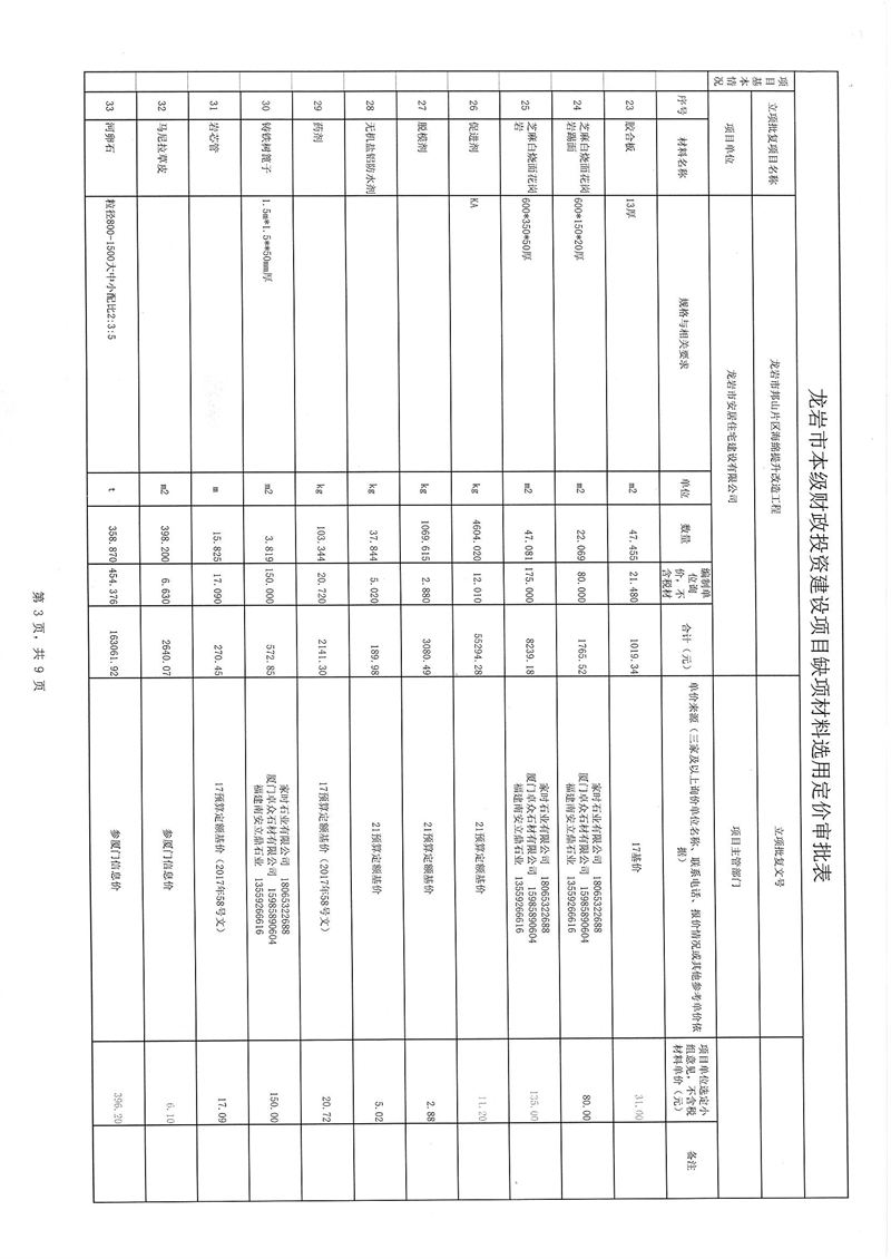 龍巖市邦山片區(qū)海綿提升改造工程施工招標(biāo)缺項(xiàng)材料公示