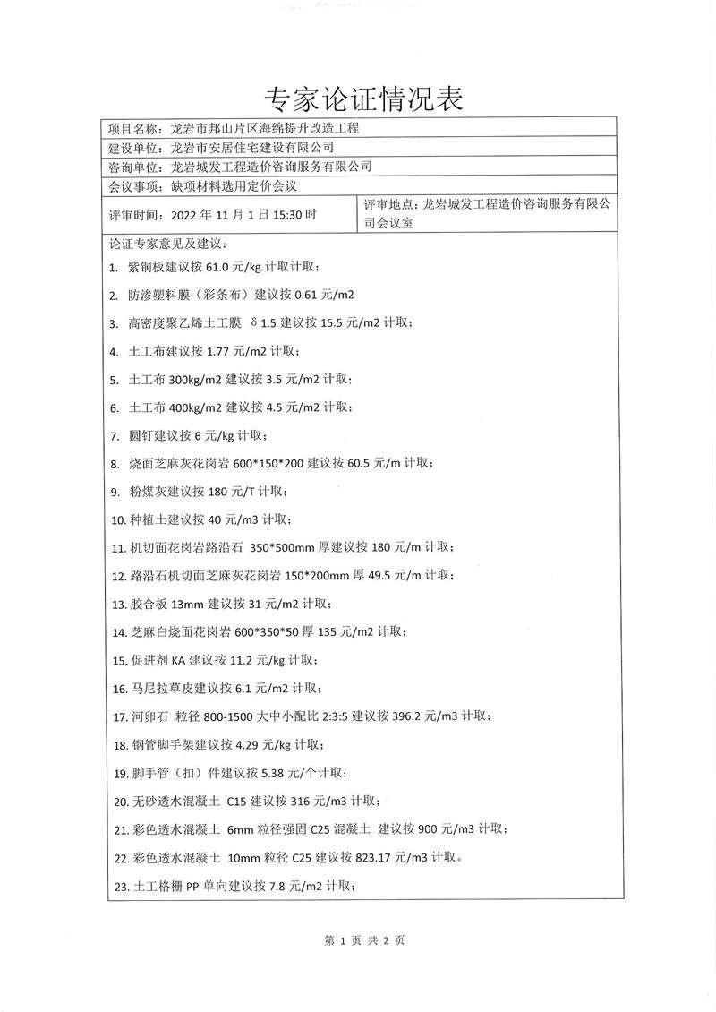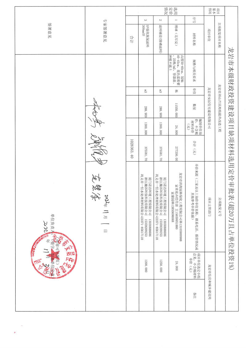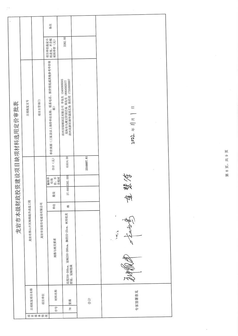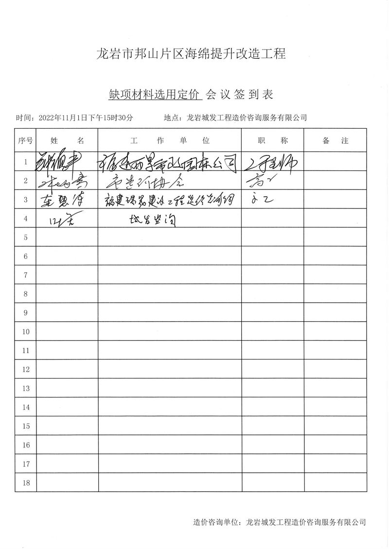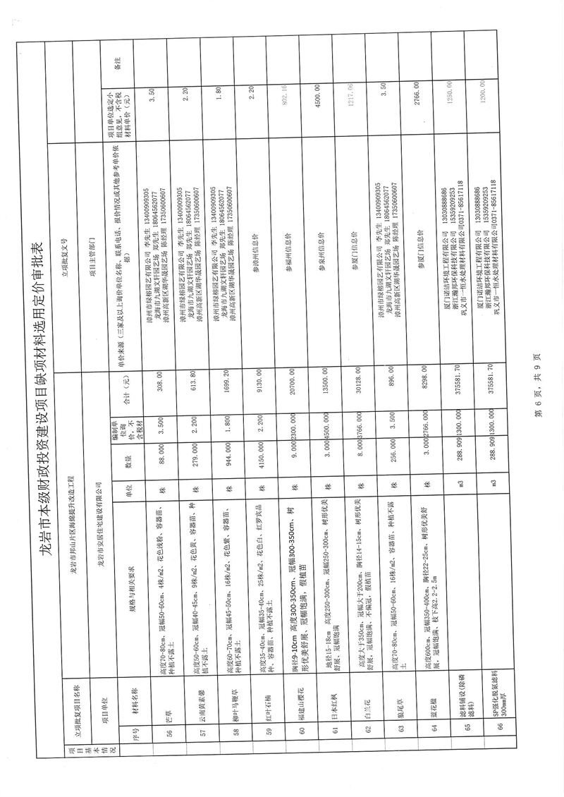 龍巖市邦山片區(qū)海綿提升改造工程施工招標(biāo)缺項(xiàng)材料公示